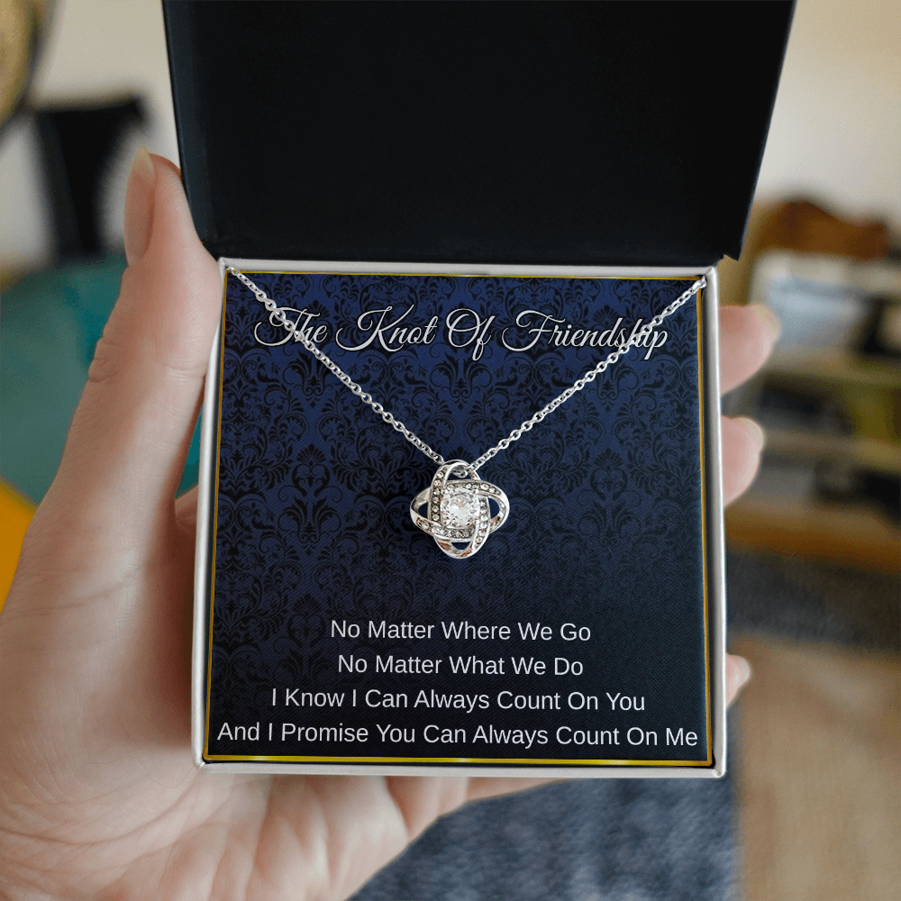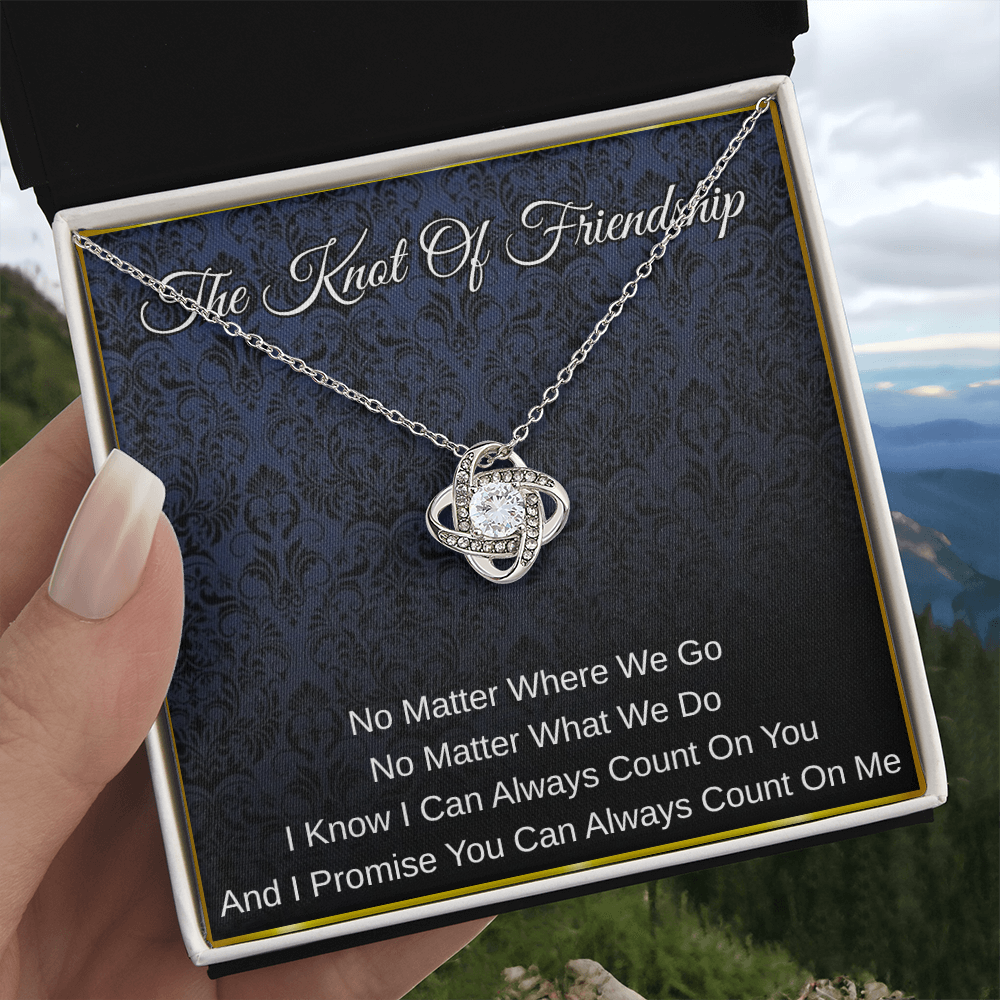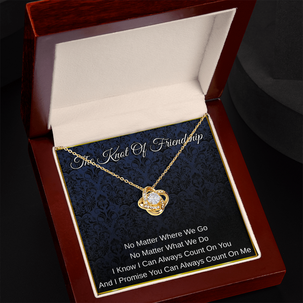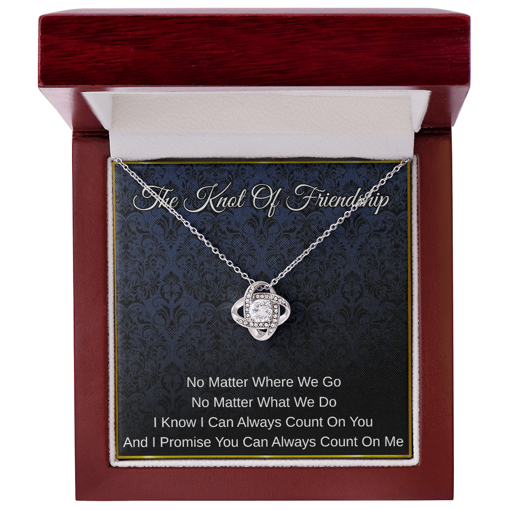 Imagine her reaction receiving this beautiful Love Knot Necklace. Representing an unbreakable bond between two souls, this piece features a beautiful pendant embellished with premium cubic zirconia crystals. Surprise your loved one with this gorgeous gift today!